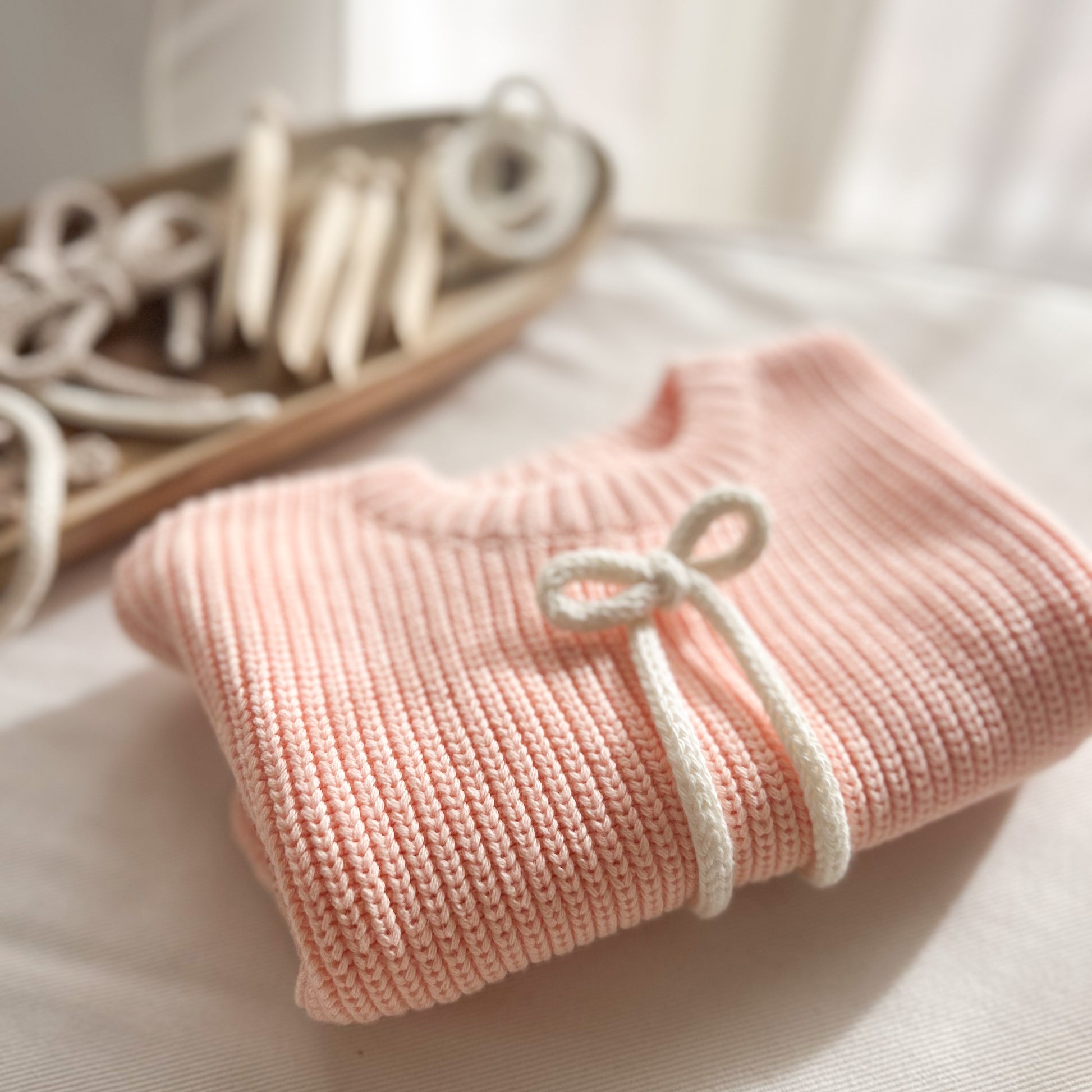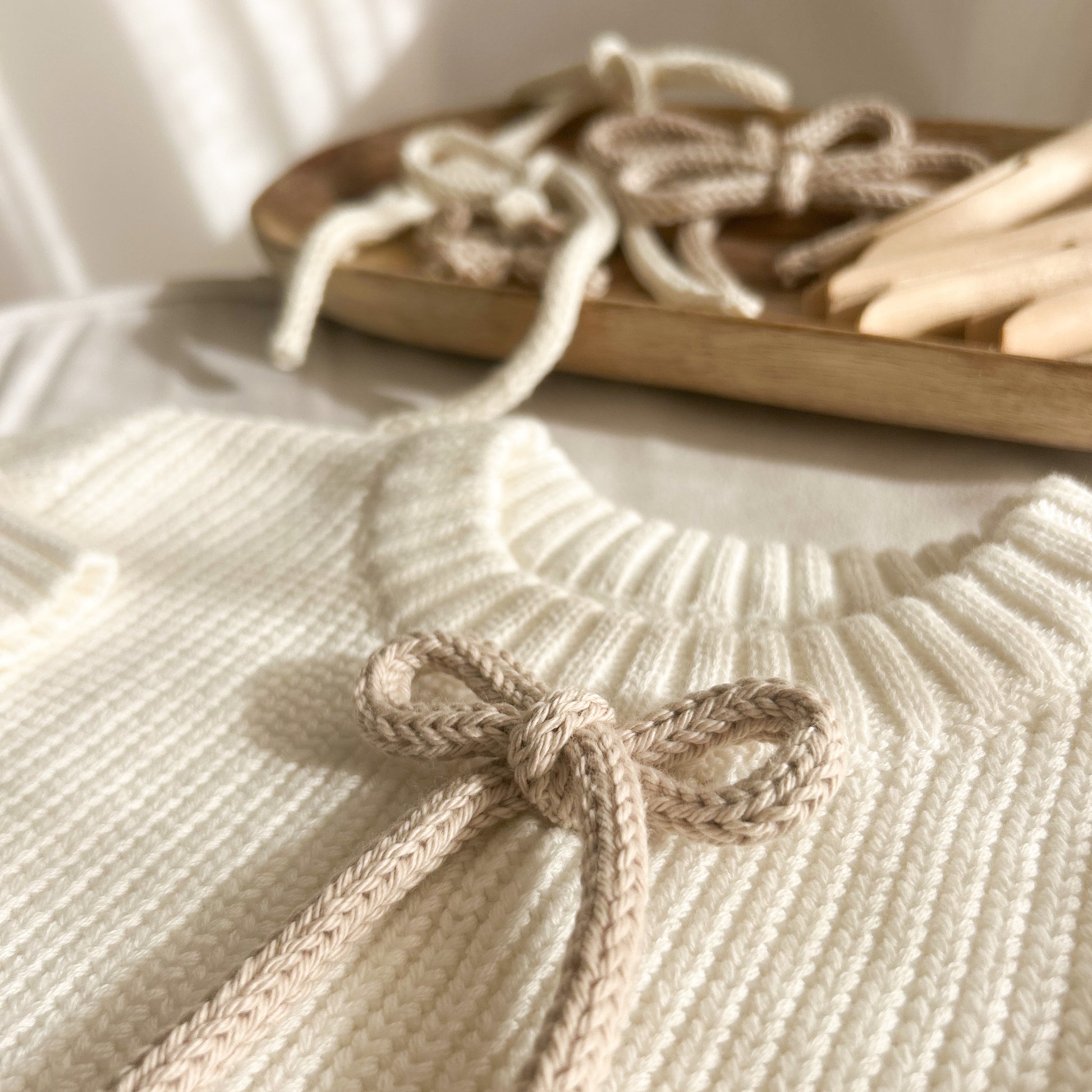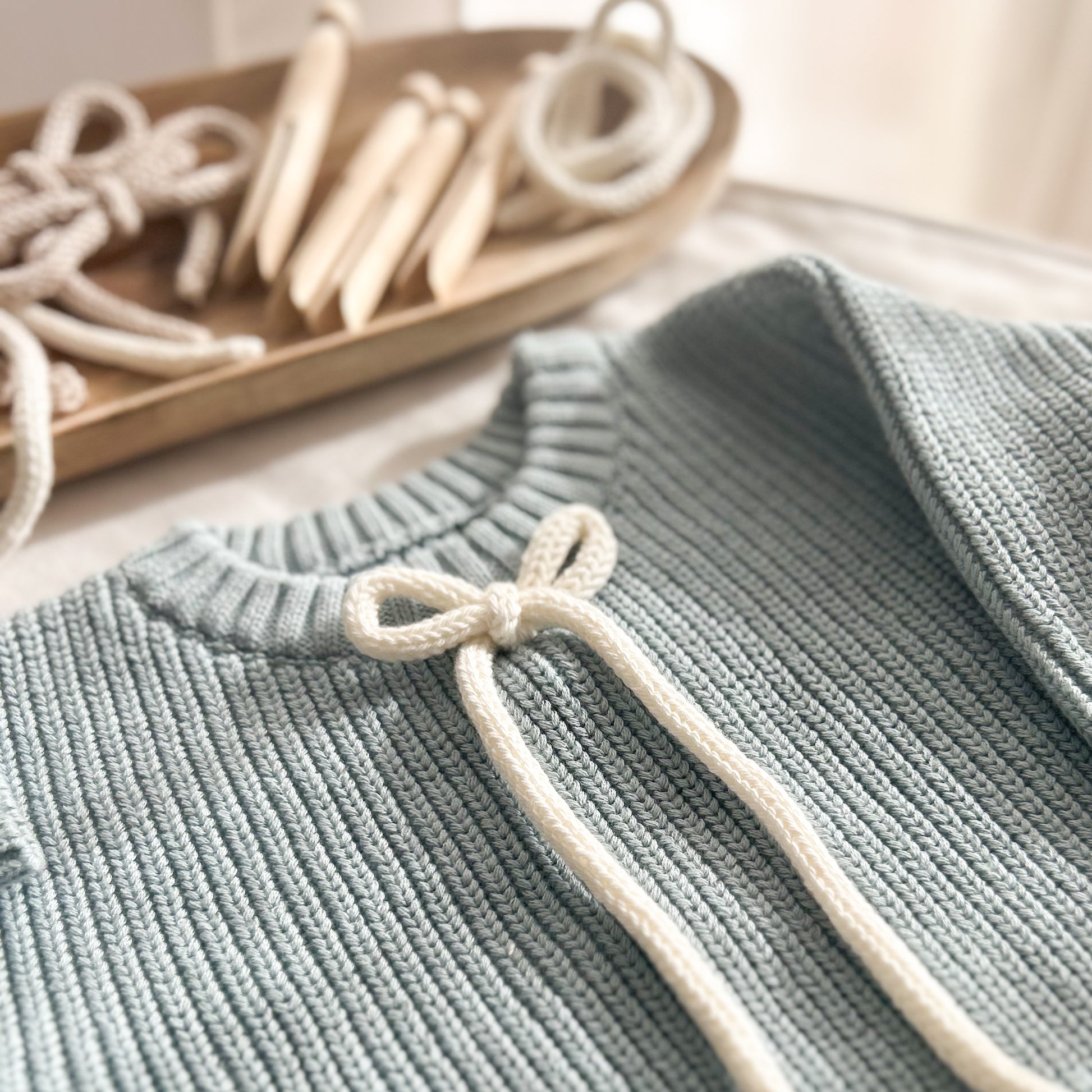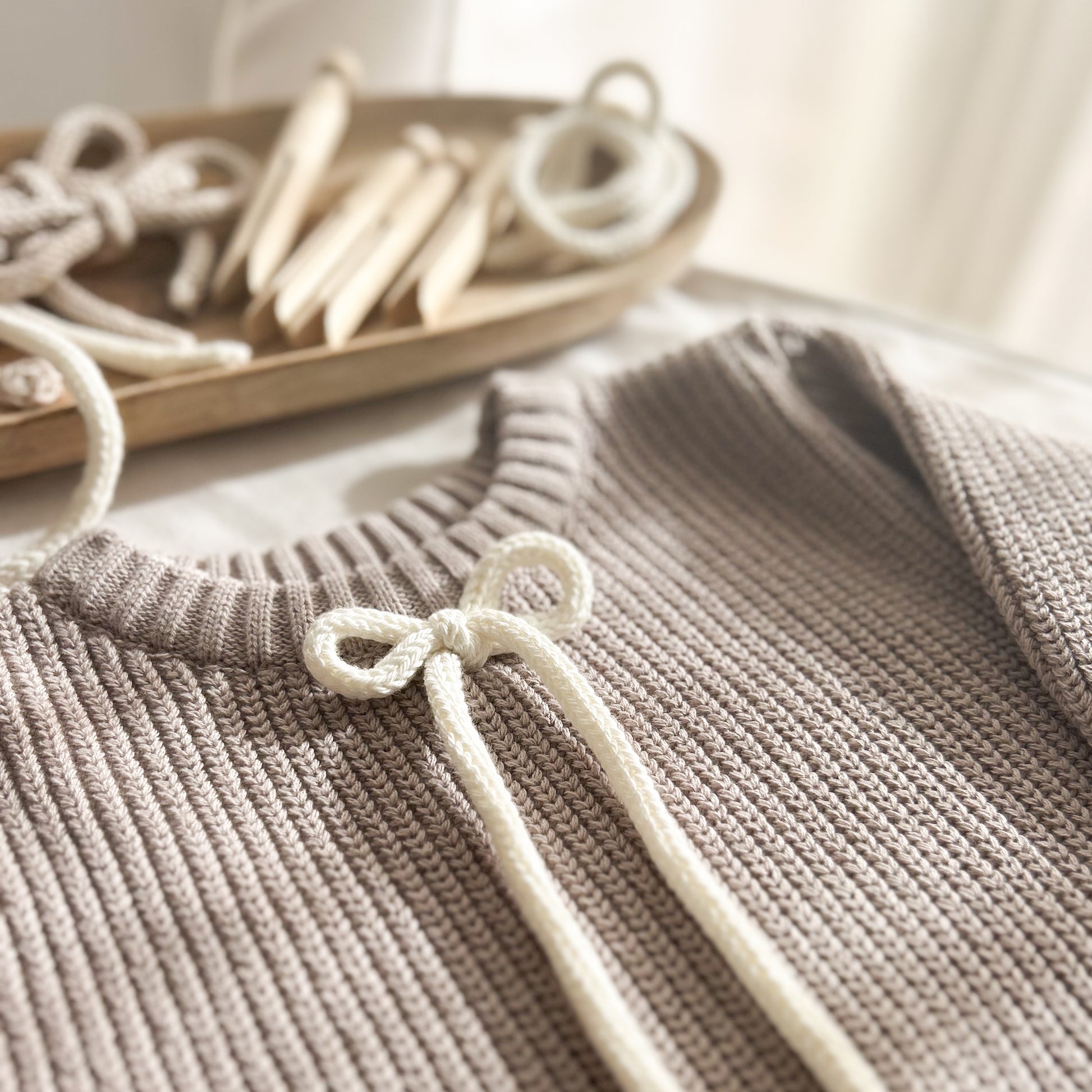 Jersey de punto con aplique de lazo en cordón tricotin.