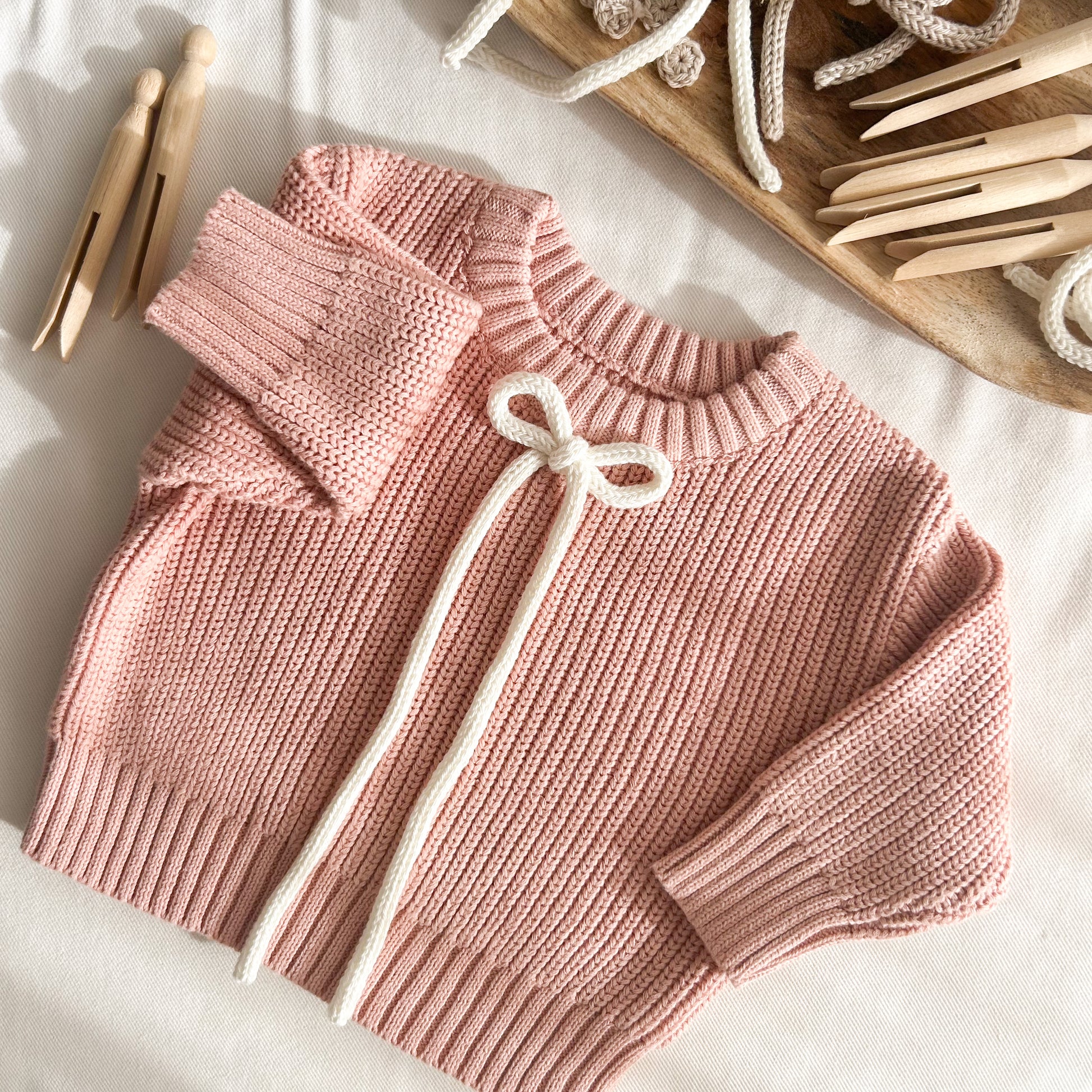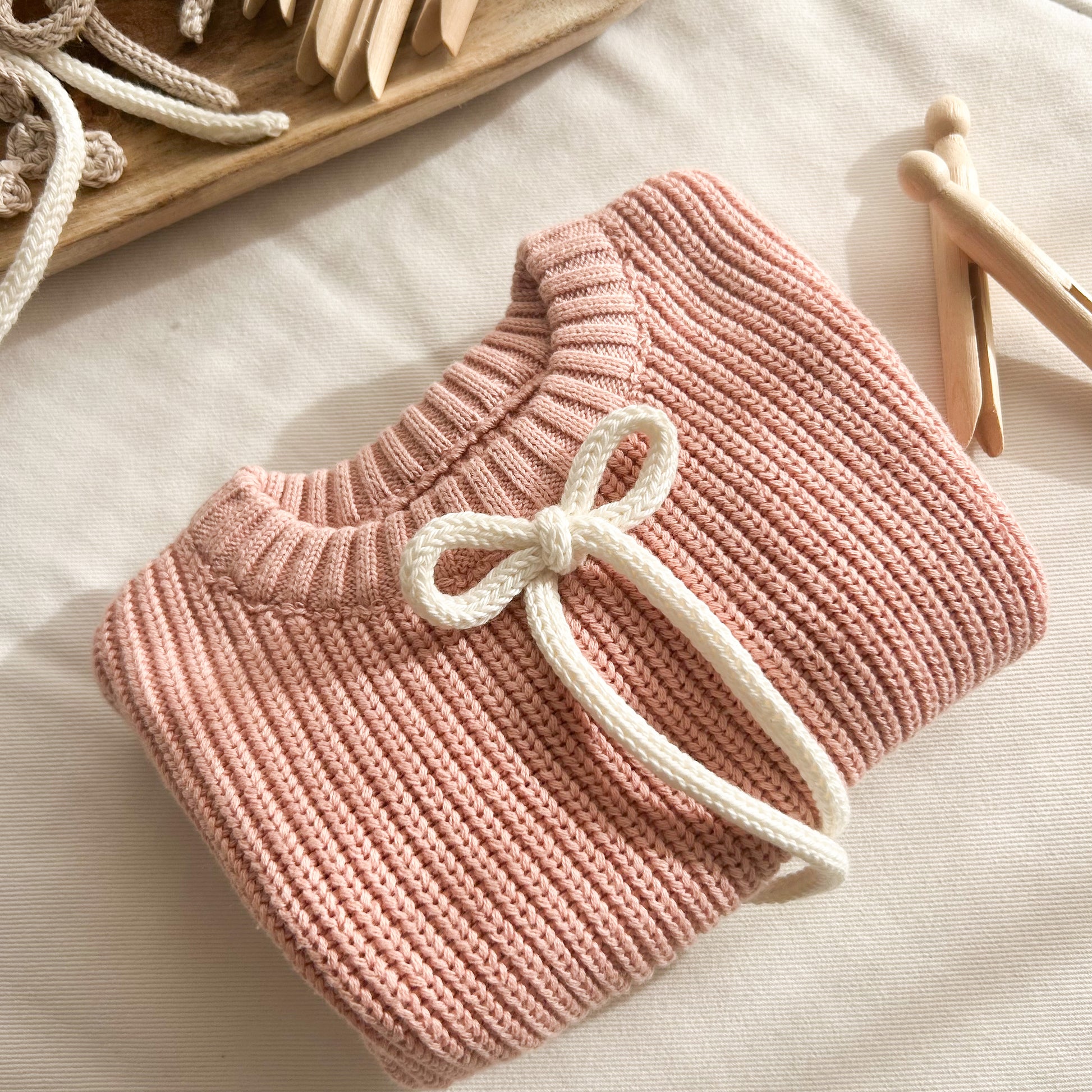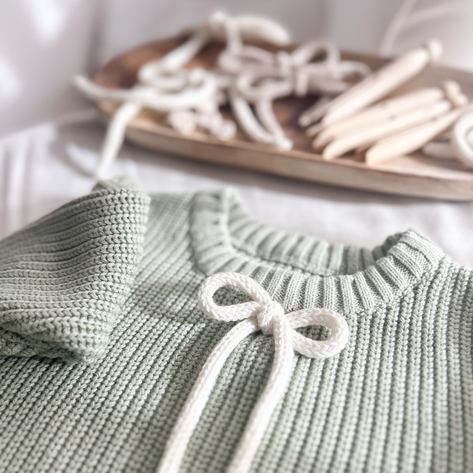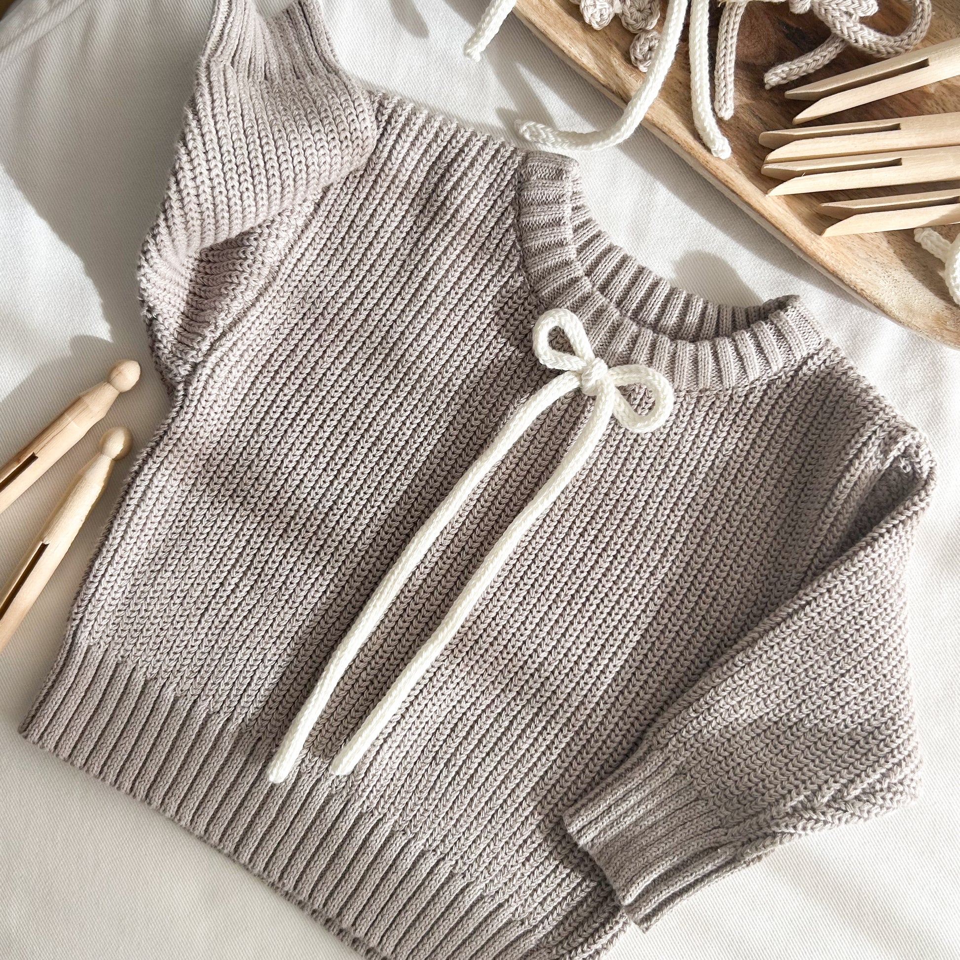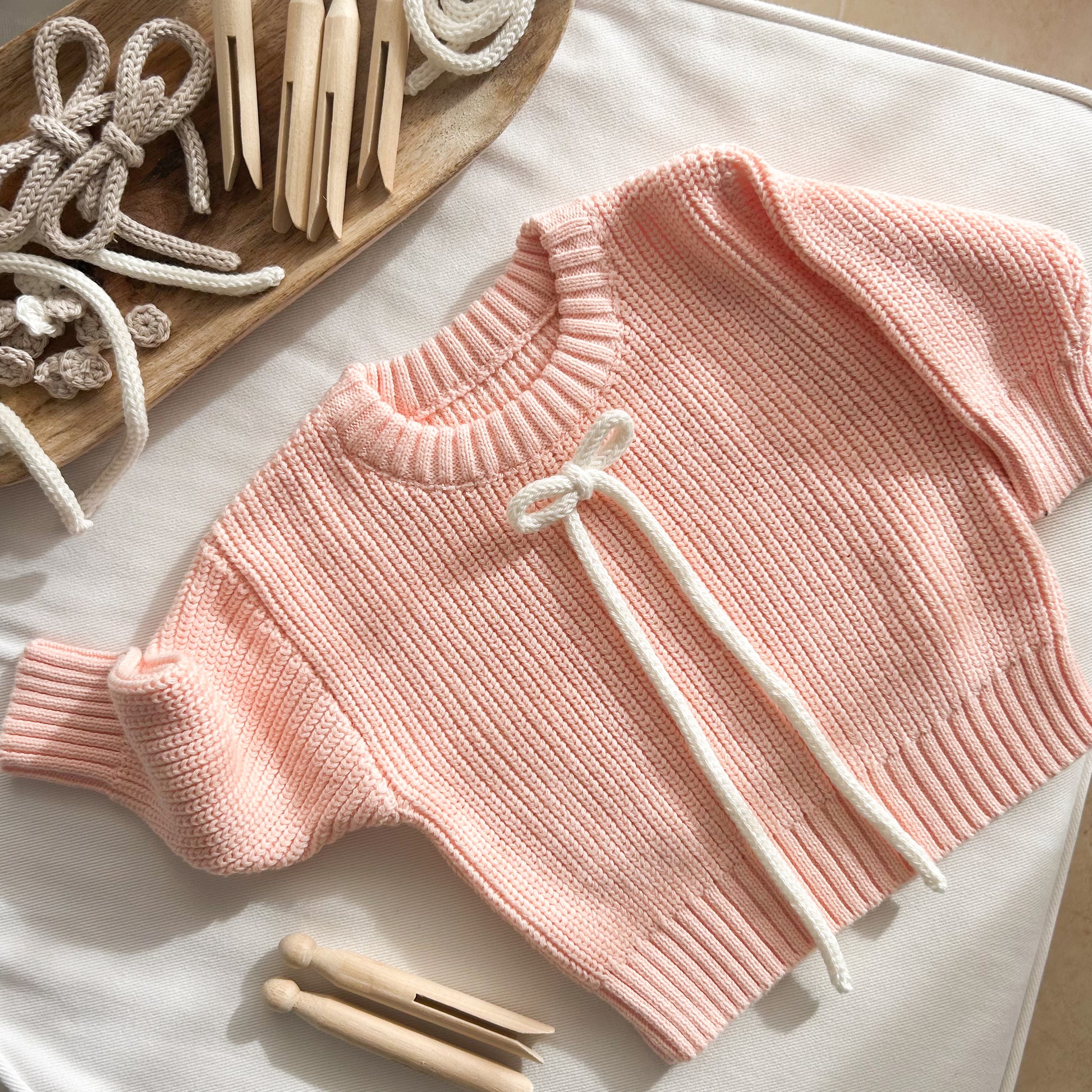 Jersey de punto con aplique de lazo en cordón tricotin.