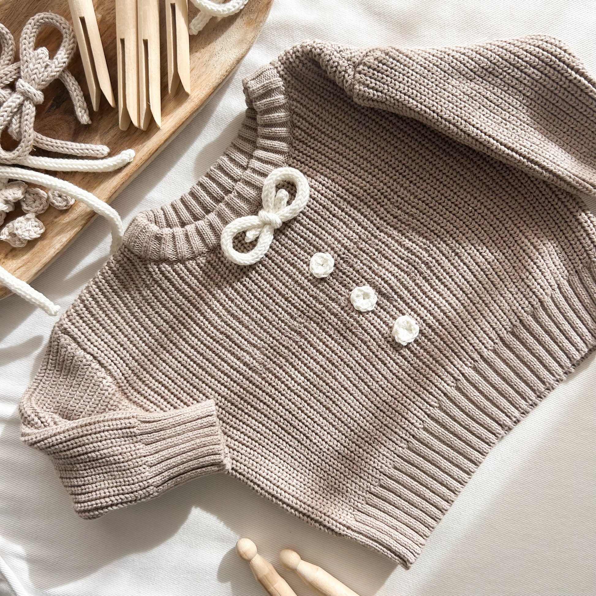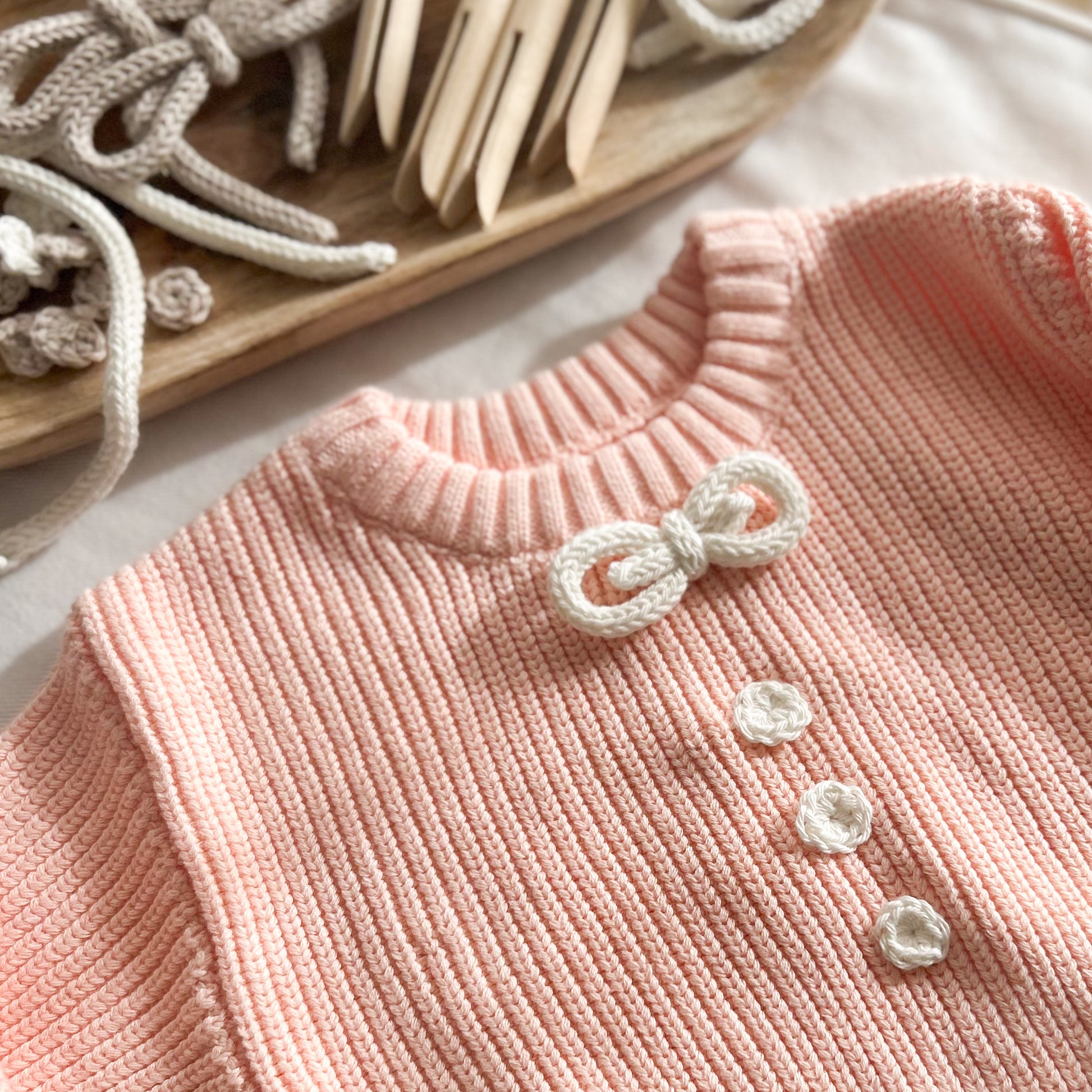 Jersey de punto con aplique de pajarita en cordón tricotin.