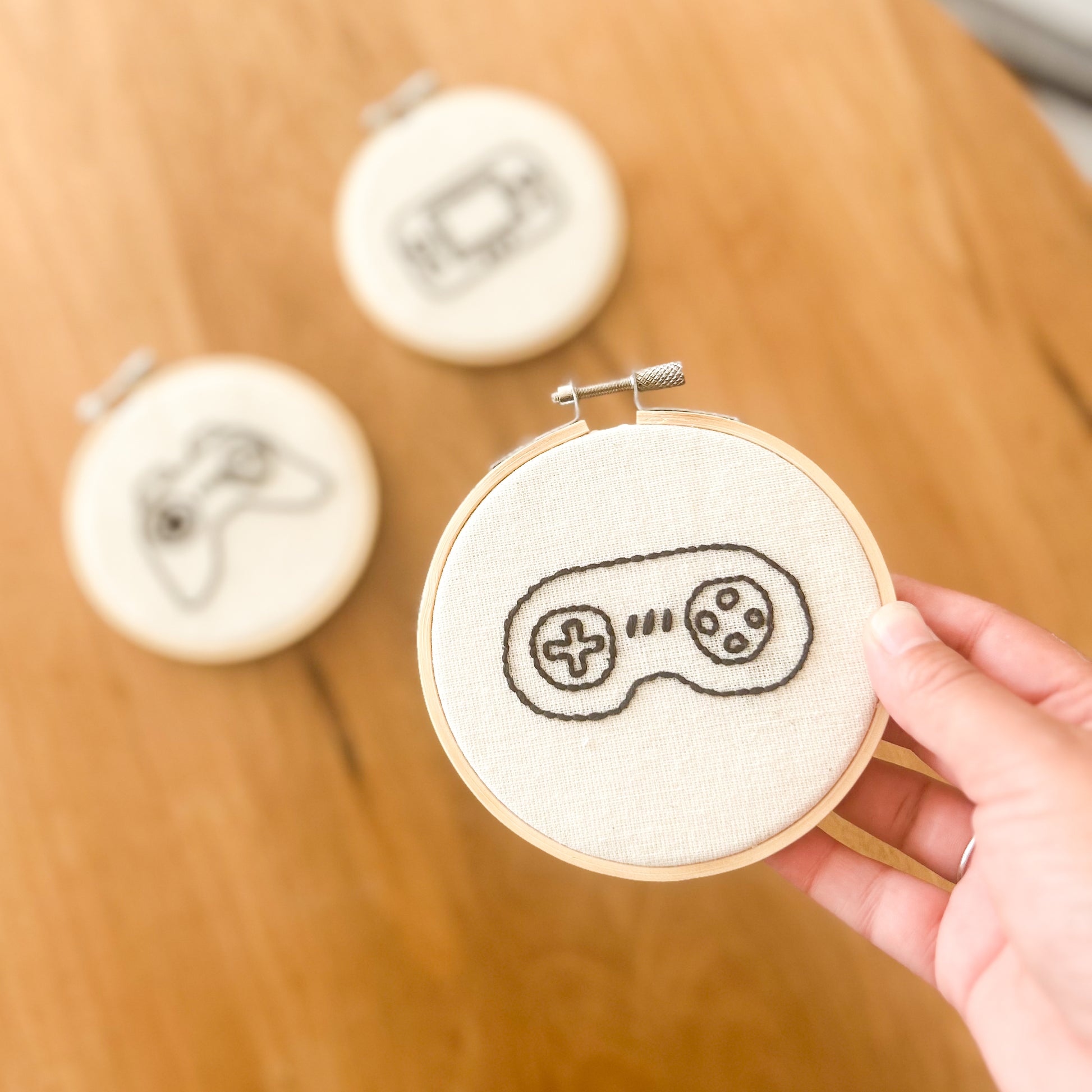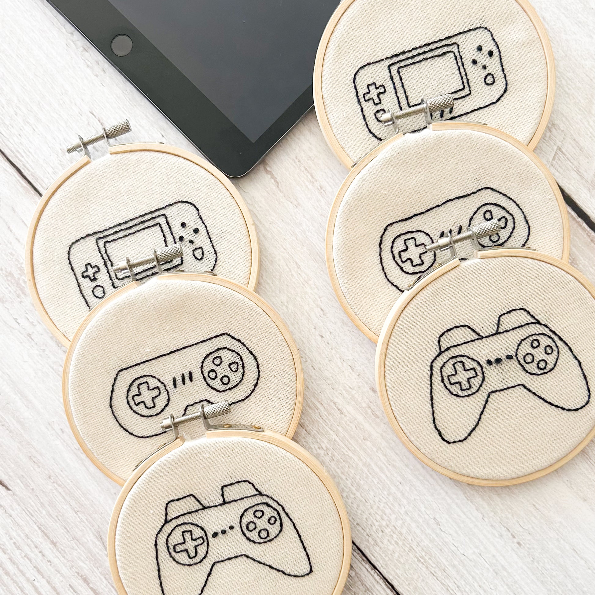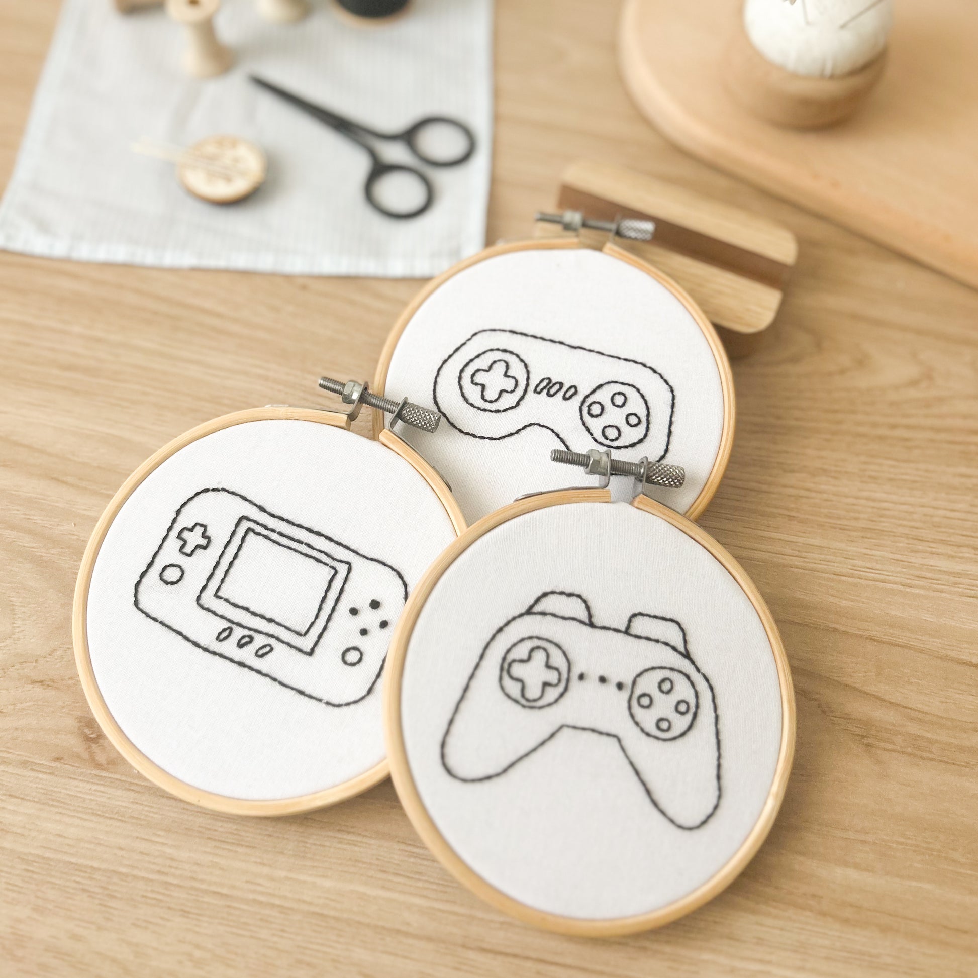 Trío de bastidores bordados con diseño "Joystick" (3 tipos de joystick)